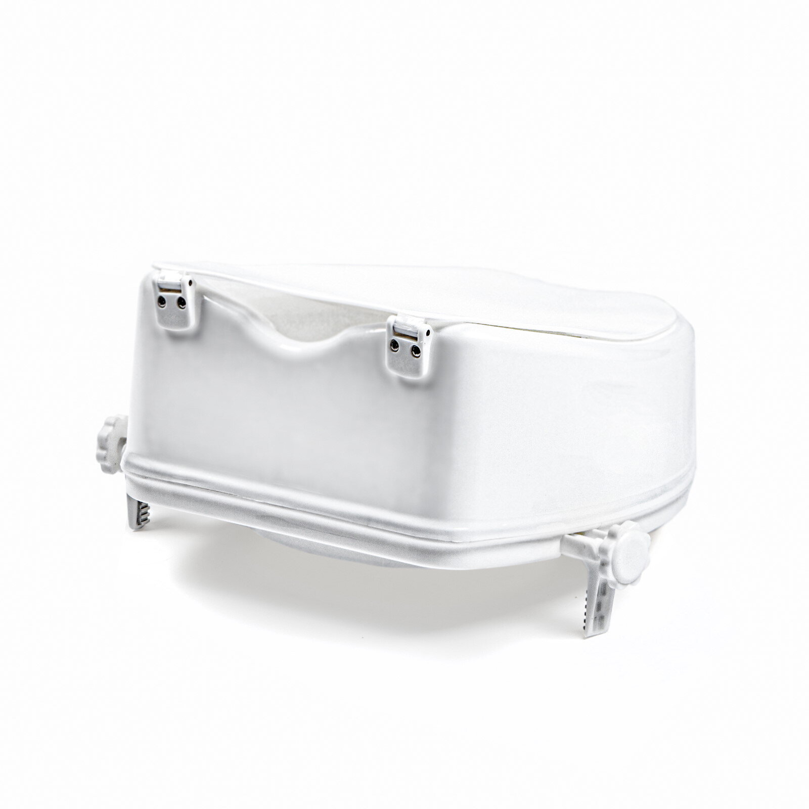 • Uzlieciet paaugstinājumu uz klozetpoda un no abām pusēm nostipriniet ar fiksēšanas rokturīšiem.
